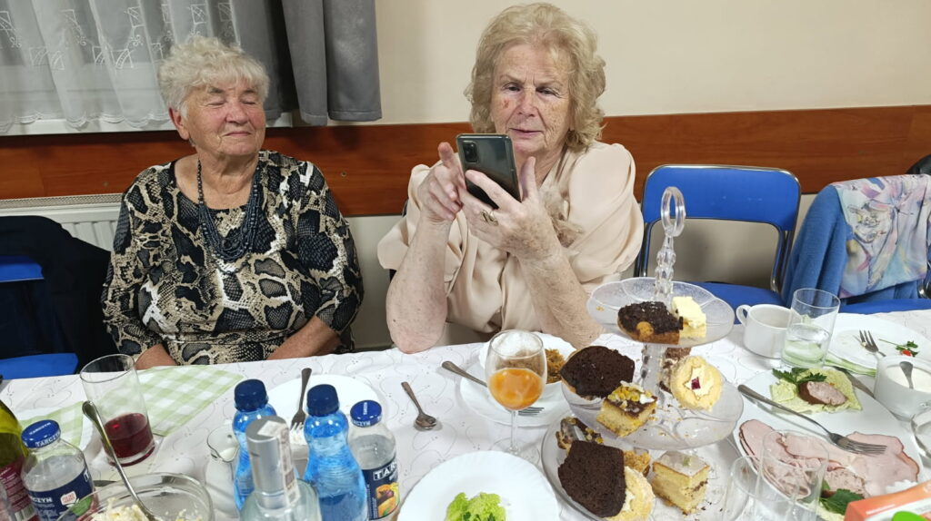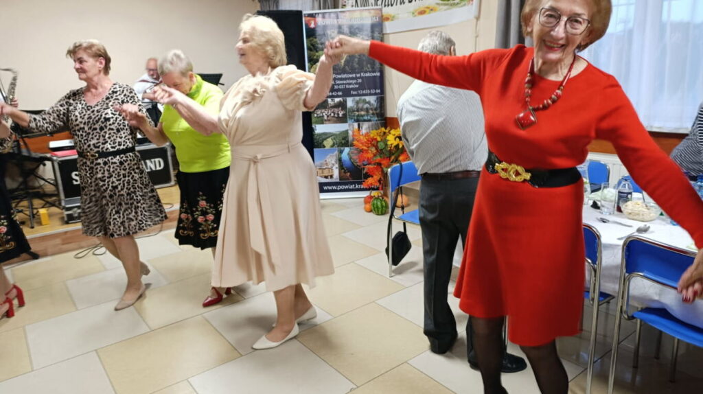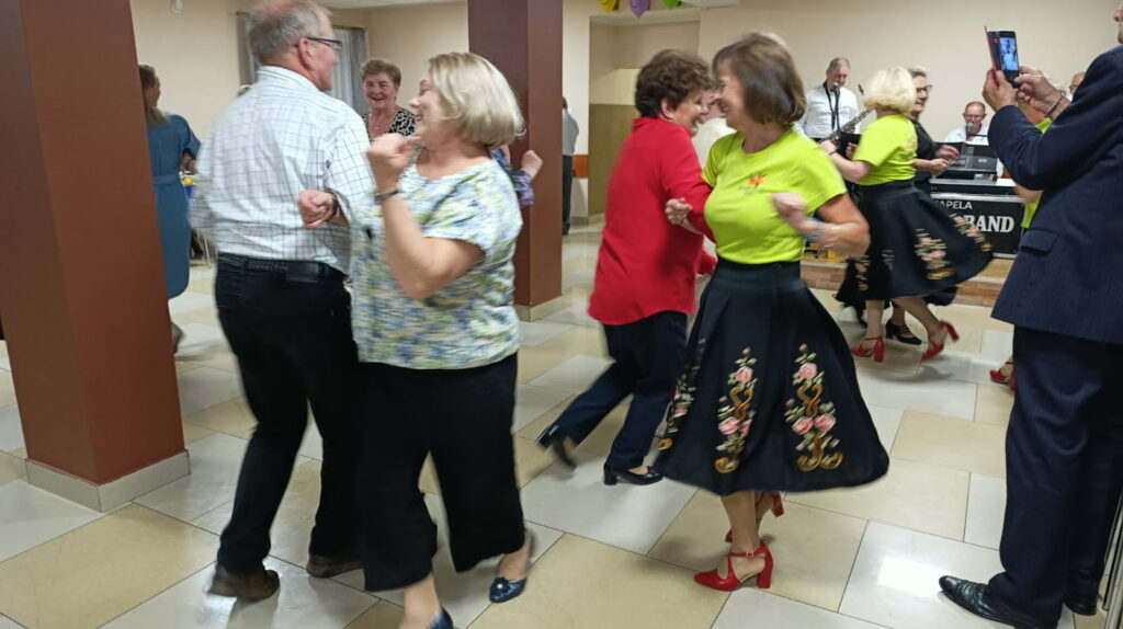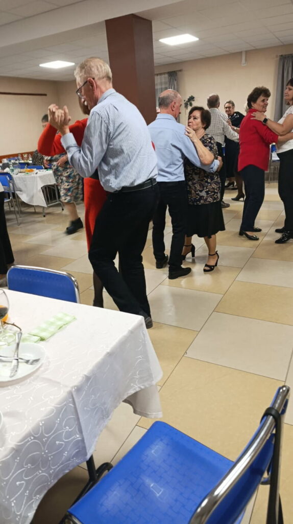 Jak zawsze wszystko było zorganizowane na medal. Stoły pięknie i bogato zastawione, orkiestra „Senior Band” zachęcała do parkietowych szaleństw, gdzie prym wiodły młode i piękne gospodynie wiejskie. Obserwując salę, aż trudno było uwierzyć, że tak żywiołowo mogą bawić się seniorzy. Powodem tego w/g mojej oceny jest to, że w tańcu, w miłym towarzystwie zapomina się, że tu mnie boli, tam mnie strzyka, bo taniec jest swoistą rehabilitacją ruchową i faktycznie czuliśmy tą drugą młodość, zresztą zgodnie z nazwą goszczącego nas Klubu Seniora.