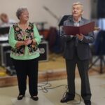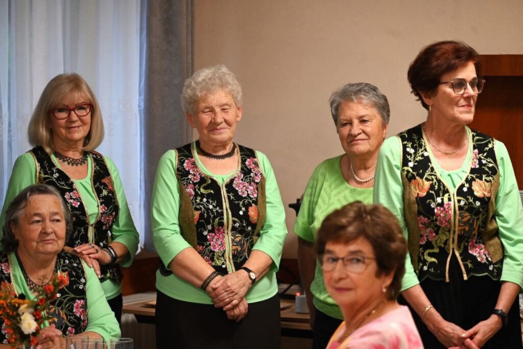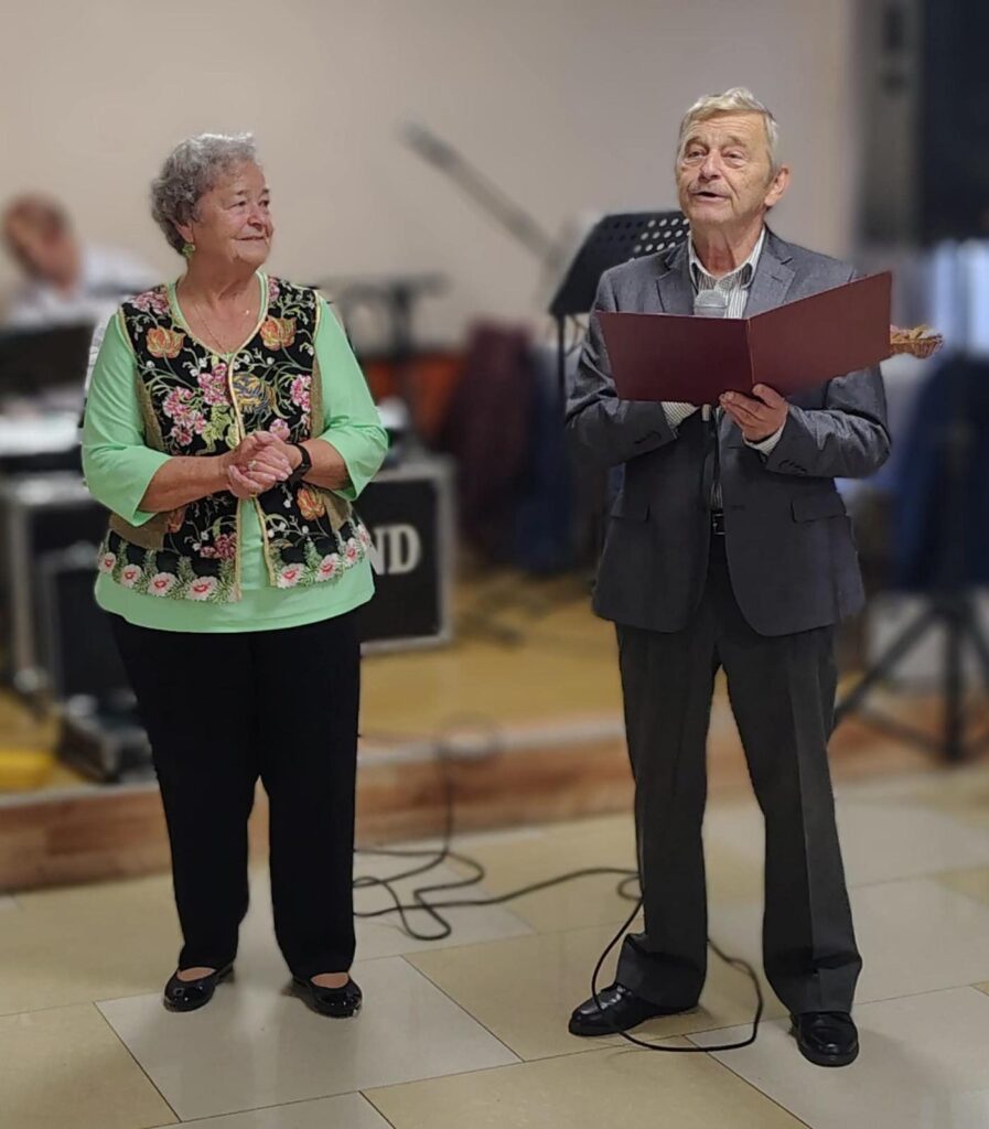 Oj! Zapomniałam na początku mojej krótkiej relacji napisać, że po miłym powitaniu gości przez Przewodniczącego Klubu Wiesława Kosteckiego, wystąpiły brzoskwinki – seniorki, które pięknie zaśpiewały hymn Klubu Seniora autorstwa Hanny Bogner, a refren był śpiewany przez całą salę.